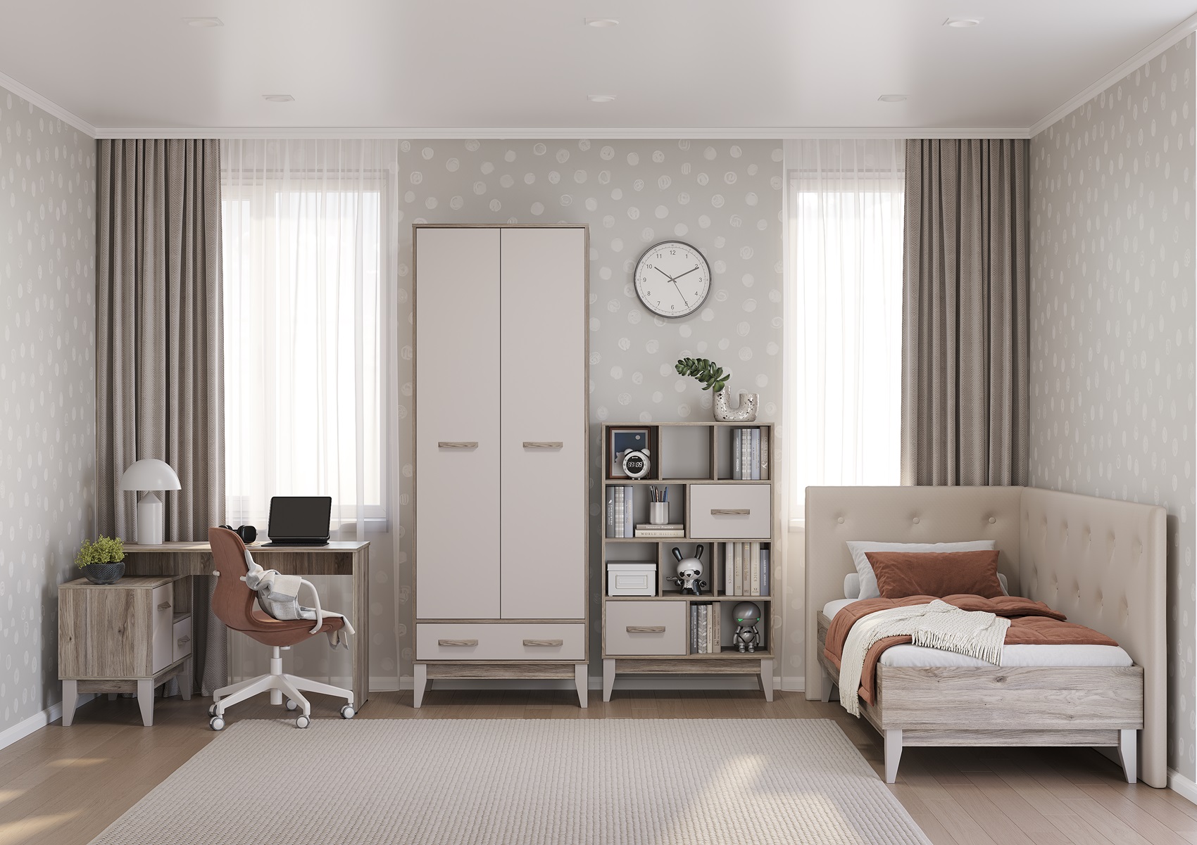 Одноместная кровать Скандика — это минималистичная и стильная модель для комфортного сна. Кровать можно дополнить мягкими накладками, которые крепятся на стену и выдвижными ящиками.