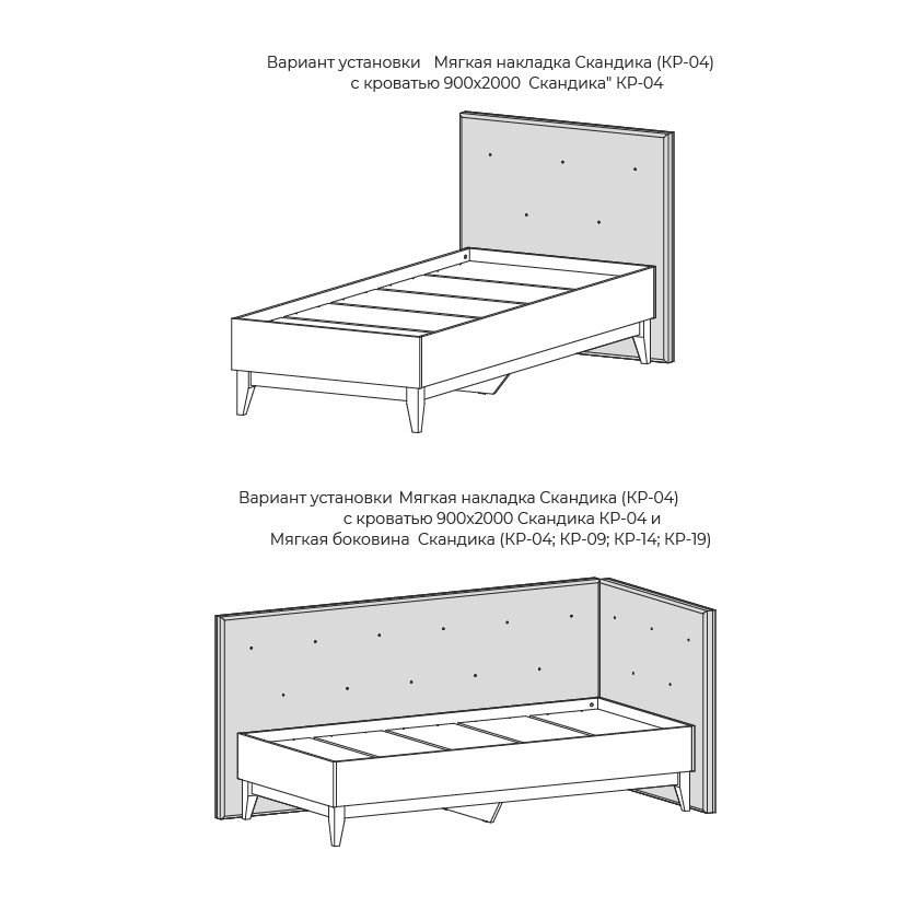 Кровать комплектуется проложками ДСП, мягким изголовьем и боковиной, которые крепятся на стену.