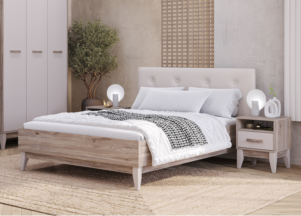 Двуместная кровать Скандика — это минималистичная и стильная модель для комфортного сна. Кровать дополнена мягким изголовьем, которое крепится на стену.