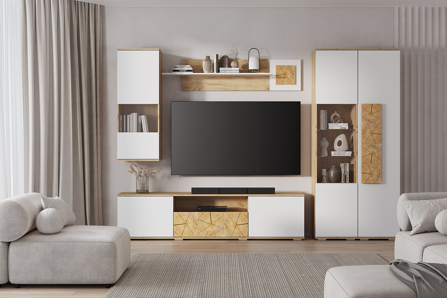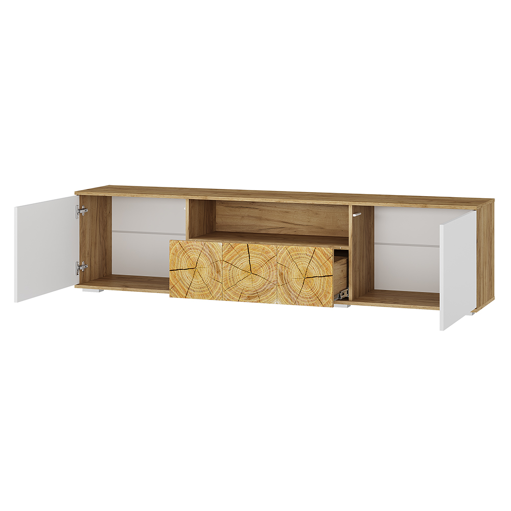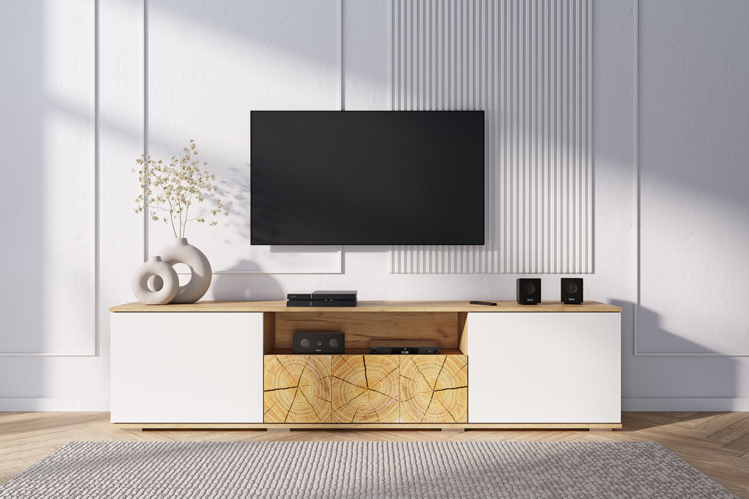 Коллекция Тиволи – это сочетание утонченного и стильного дизайна и функциональности. Оригинальные вставки с имитацией спила дерева создают яркий акцент на каждом предмете коллекции. Корпуса моделей в цвете дуб крафт золотой подчеркиваются белыми фасадами.