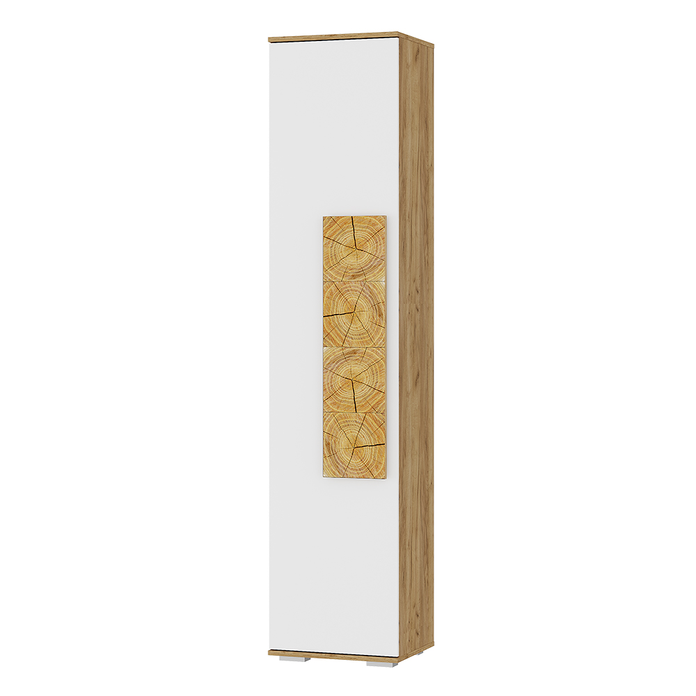 Компактный пенал из модульной коллекции Тиволи. За белоснежным фасадом с оригинальной ручкой, имитирующую сруб дерева, располагаются 4 полки. Максимальная нагрузка на каждую 10 кг.