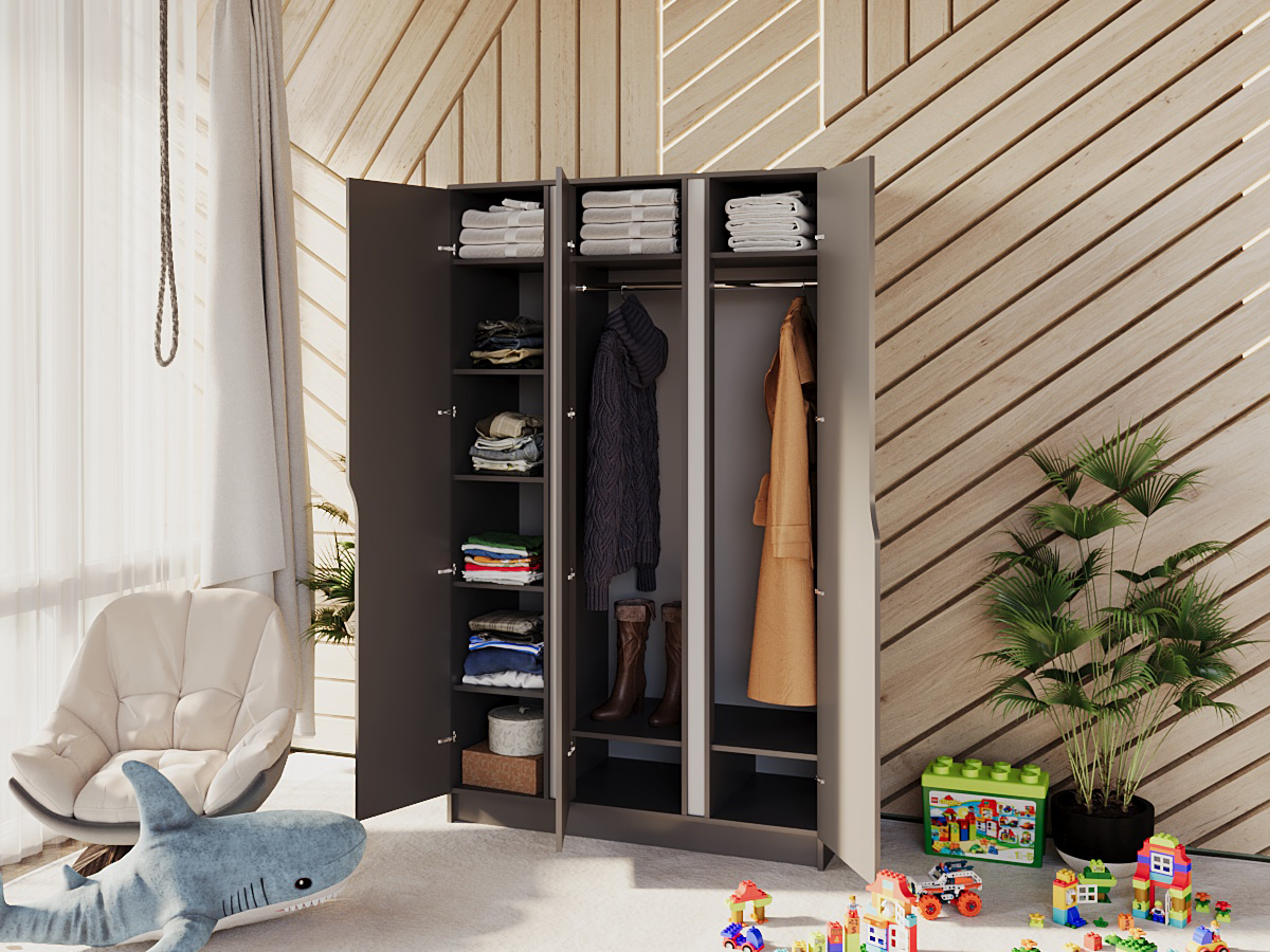 Отзывы о Столплит Шкаф распашной Монс 3, 170x230x55 Антрацит