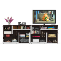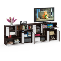 Конструктивно это две тумбы объединенные в одну широкую. Каждая тумба вместительна с четырьмя закрытыми отделениями и открытыми нишами - отличная подставка для домашнего кинотеатра. Широкий верхний горизонт тумб послужит надёжной полкой для установки телевизора любой диагонали. Тумбы оборудованы четырьмя вместительными отделениями с полкой за распашными дверками и четырьмя нишами без полок за откидными дверками. Кроме того, оригинальная конструкция тумб выделяет две двухярусные ниши, очень удобных для видео- и аудиоаппаратуры, декора, фото. Стильный дизайн, интересная форма тумб и модное сочетание цветовой гаммы поддержат гармонию вкуса Вашей современной обстановки. Широкая ТВ тумба С1-1400 не универсальна при сборке - собирается только так, как представлено на картинке.