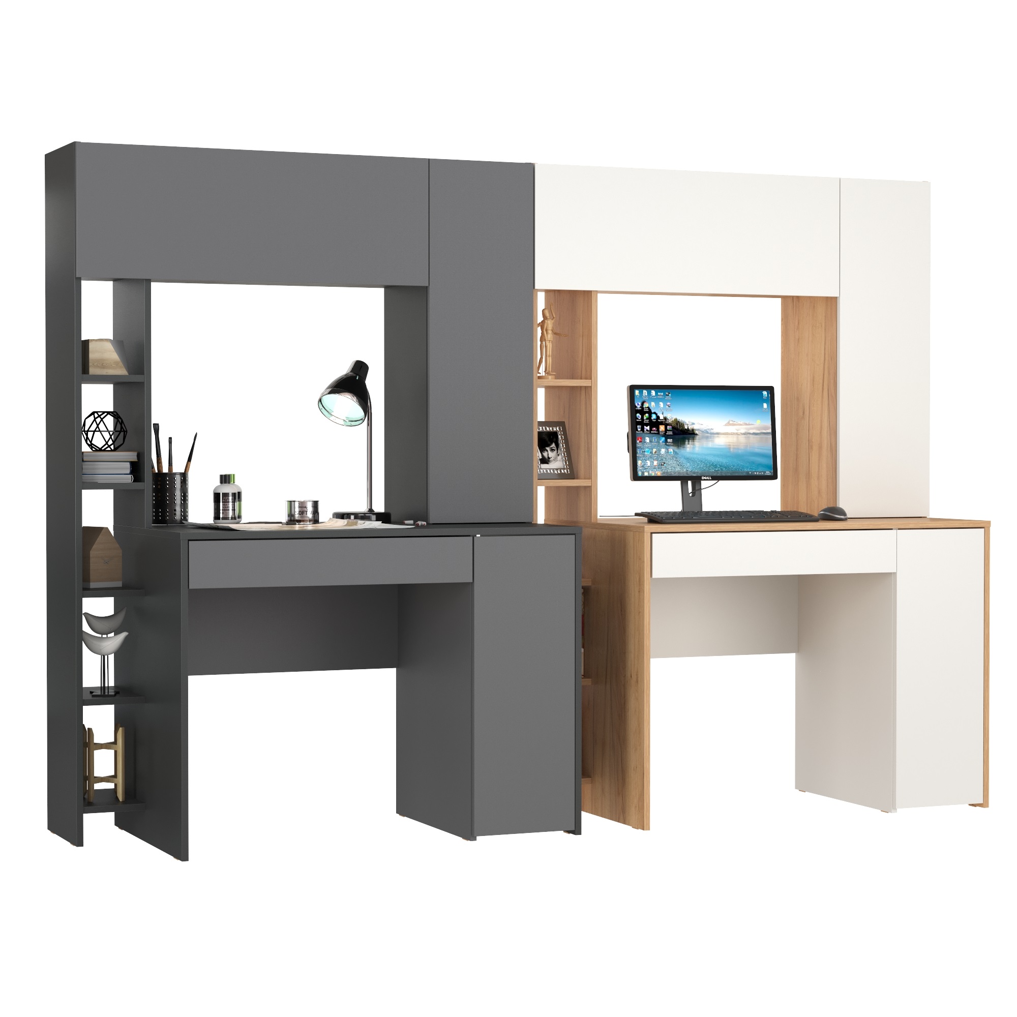 В комплектации два стола Комфорт 12.71. Удобные и устойчивые столы с тумбами под системные блоки и выдвижными ящиками для канцелярии дополнены практичными надстройками. Надстройки с вместительными нишами за откидными фасадами и распашными отделениями с полками выделяют на столах удобные ниши для мониторов. По центру задней стороны столешниц расположен кабель-канал, который позволяет аккуратно и незаметно провести провода, поддерживая порядок на рабочих местах. Закрытые отделения компьютерных столов Комфорт 12.71 хранят деловые тайны, а пять полок стеллажей - документы и книги в удобной близости. Тумбы расположены с правой стороны компьютерных столов, стеллажи - с левой, универсальная сборка не предусмотрена. Ящики на шариковых направляющих полного выдвижения обеспечивают надёжное и прямолинейное перемещение. Подъемный фасад и ящик стола Комфорт 12.71 открываются за край фасада. Распашные фасады надстройки и тумбы открываются нажатием. Распашные двери мебели на четырёхшарнирных петлях без доводчиков, откидные фасады - на газовых лифтах. Дно ящиков и задние стенки врезные, выполненные из облагороженного ХДФ, позволяющего ящикам выдерживать большую нагрузку.