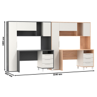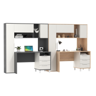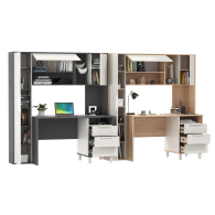 Столы не имеют универсальной сборки - тумбы расположены с правой стороны, а с левой стороны находятся пеналы с глухими распашными дверками и пятью полками внутри.