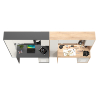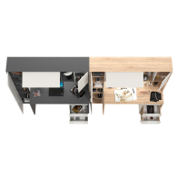 В комплекте два стола Комфорт 12.95N. Однотумбовые столы с ящиками, надстройки с закрытыми и открытыми отделениями, а также пеналы - это оптимальная комбинация для создания удобного рабочего пространства. Надстройки выделяют на столах удобные ниши, достаточные для установки мониторов, оргтехники и работы с множеством деловых бумаг. Система хранения в надстройках солидна и разнообразна - четыре закрытых отделения (два откидных и два распашных с полкой) и четыре открытые ниши. Для канцелярии и часто востребованных документов каждый стол Комфорт 12.95N оборудован тремя выдвижными ящиками и нишей над ними.