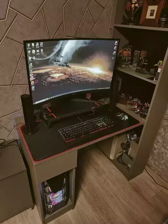 Обращаем Ваше внимание, что для надёжной фиксации стола, необходимо крепление стеллажа к стене.