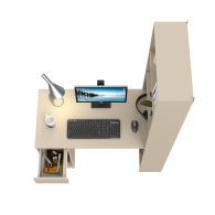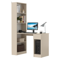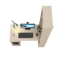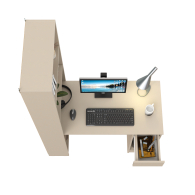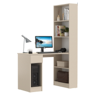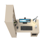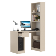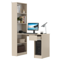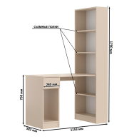 Данная модель представляет собой сочетание удобного однотумбового стола и открытого стеллажа. Такой тандем составляет удобное рабочее место, занимая минимум места, предоставляет максимум функционального наполнения. Стол имеет большую столешницу на которой можно разместить и рабочие документы, и учебные принадлежности. С одной стороны столешница закреплена на тумбе, с другой - на полочке открытого стеллажа. Тумба стола имеет выдвижной ящик и открытую нишу для системного блока стационарного компьютера. Если же, у Вас в пользовании ноутбук, ниша пригодится для размещения портфеля, сумочки или рюкзака. Стеллаж в данной конструкции значительно увеличивает комфорт рабочего места. На четырёх полочках стеллажа можно разместить все, что необходимо для результативной работы или учёбы. Папки с документами, журналы, учебники и книги, мелкая офисная техника, предметы декора или игрушки. Завершив работу, положите на полочку сложенный ноутбук и освободите столешницу для игры с ребенком или собирания пазлов. Стол удовлетворит любые Ваши запросы и приятно удивит как функциональностью, так и демократичной ценой. Универсален при сборке - стеллаж можно расположить как с левой стороны, так и с правой.