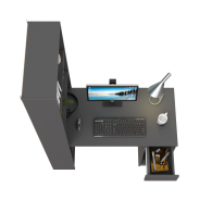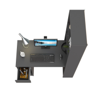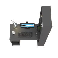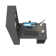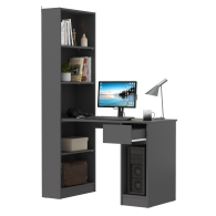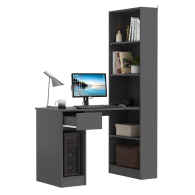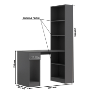Данная модель представляет собой сочетание удобного однотумбового стола и открытого стеллажа. Такой тандем составляет удобное рабочее место, занимая минимум места, предоставляет максимум функционального наполнения. Стол имеет большую столешницу на которой можно разместить и рабочие документы, и учебные принадлежности. С одной стороны столешница закреплена на тумбе, с другой - на полочке открытого стеллажа. Тумба стола имеет выдвижной ящик и открытую нишу для системного блока стационарного компьютера. Если же, у Вас в пользовании ноутбук, ниша пригодится для размещения портфеля, сумочки или рюкзака. Стеллаж в данной конструкции значительно увеличивает комфорт рабочего места. На четырёх полочках стеллажа можно разместить все, что необходимо для результативной работы или учёбы. Папки с документами, журналы, учебники и книги, мелкая офисная техника, предметы декора или игрушки. Завершив работу, положите на полочку сложенный ноутбук и освободите столешницу для игры с ребенком или собирания пазлов. Стол удовлетворит любые Ваши запросы и приятно удивит как функциональностью, так и демократичной ценой. Универсален при сборке - стеллаж можно расположить как с левой стороны, так и с правой.