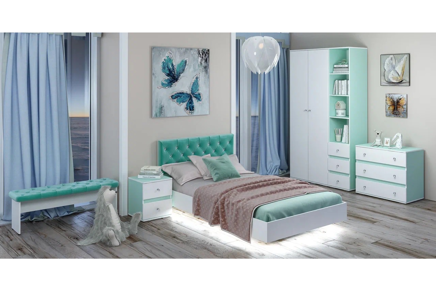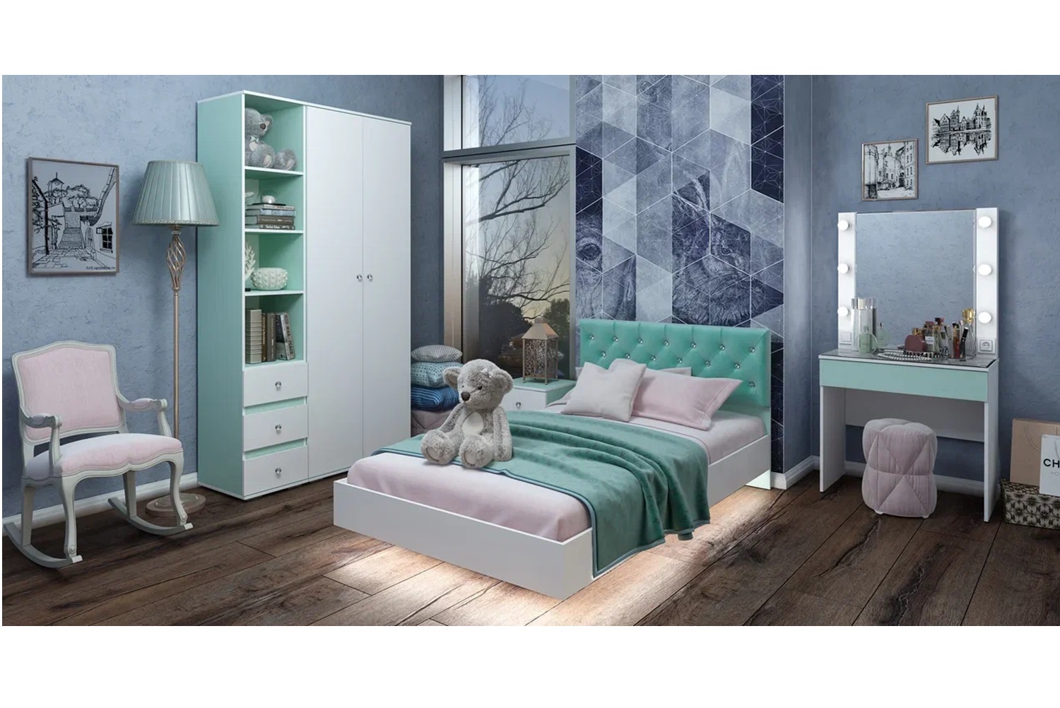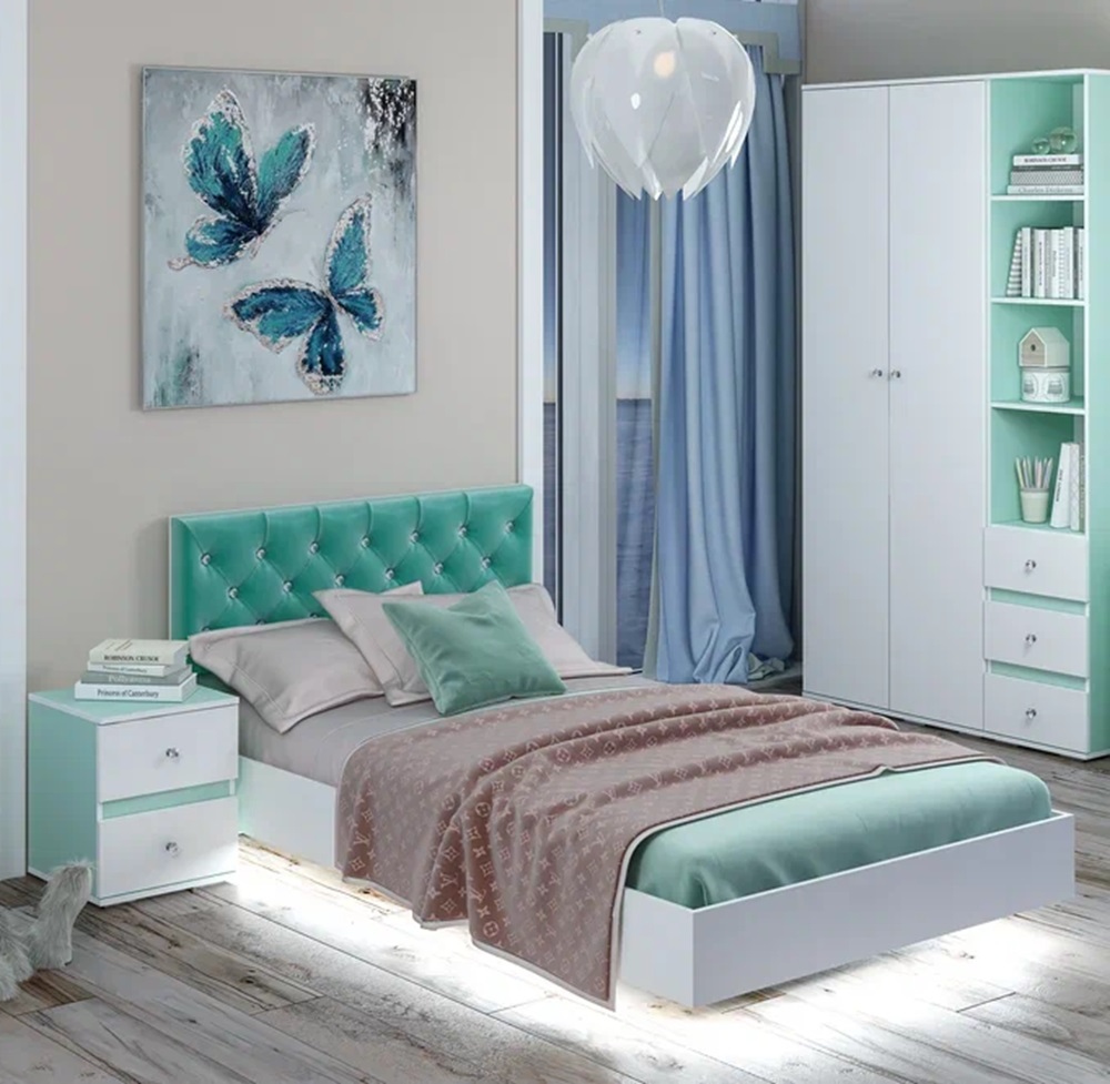 Размеры шкафа составляют 402 x 460 x 2176 мм, он оснащён тремя выдвижными ящиками и открытыми полками. Ручки выполнены в виде горного хрусталя, что придаёт изделию изысканность и элегантность. Благодаря своему дизайну и цвету, этот шкаф отлично впишется в любой современный интерьер.
