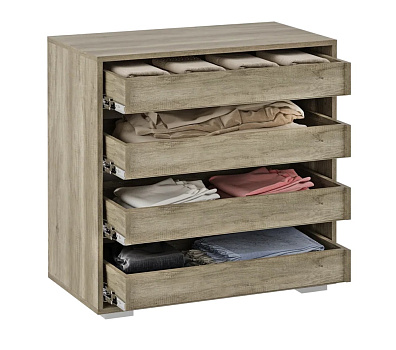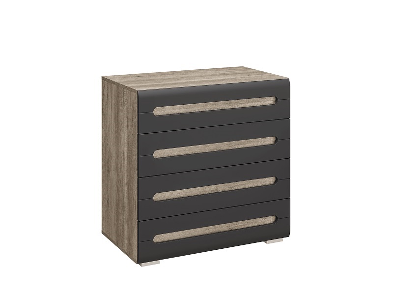 Комод Наоми КМ-09 дуб каньон/белый глянец/графит — это стильный и функциональный предмет мебели, предназначенный для хранения вещей и одежды. Он имеет четыре вместительных ящика на шариковых направляющих, которые располагаются друг над другом.