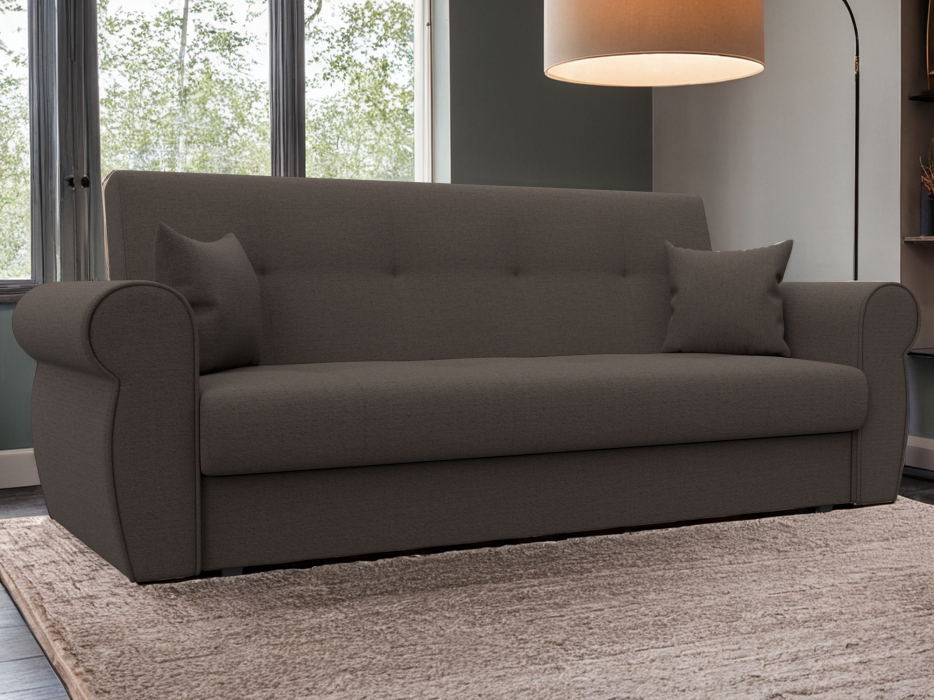 Недорогой надежный диван «Лига-019» с механизмом раскладки «книжка» прост в эксплуатации, а также отлично впишется в интерьер как жилой комнаты, так и офиса. Мягкие округлые подлокотники и две декоративные подушки обеспечат удобство и комфортный отдых. Под сиденьем находится вместительная ящик для белья размером 178х69х19 см. Конструкция функциональна, трансформируется в кровать. Диван-книжка станет выгодным приобретением для вашего дома и неотделимым элементом интерьера.