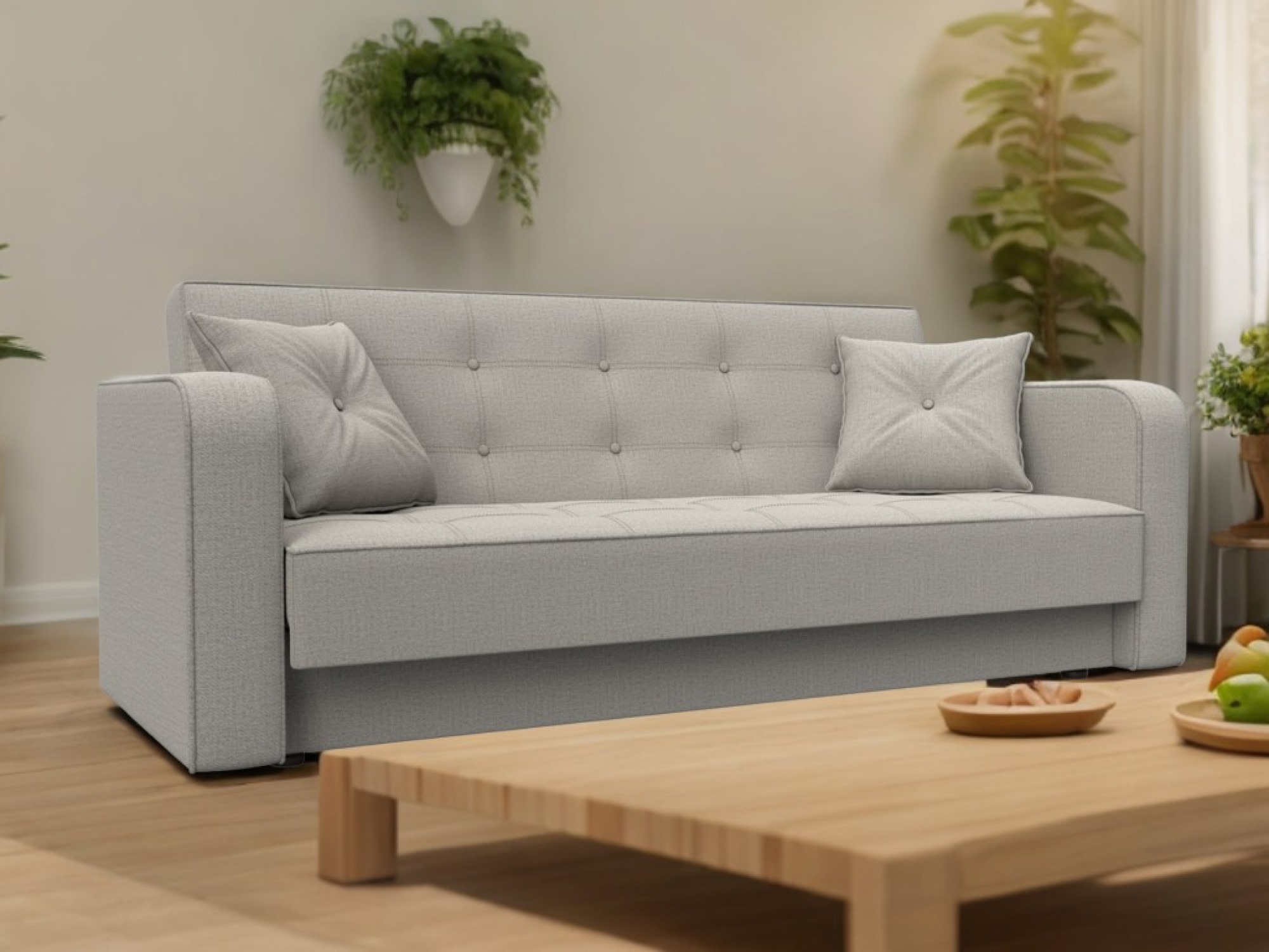 При компактных габаритах: 211х82х86 см подойдет для комнат любых размеров, легко раскладывается, обеспечивая спальное место 114x181 см.