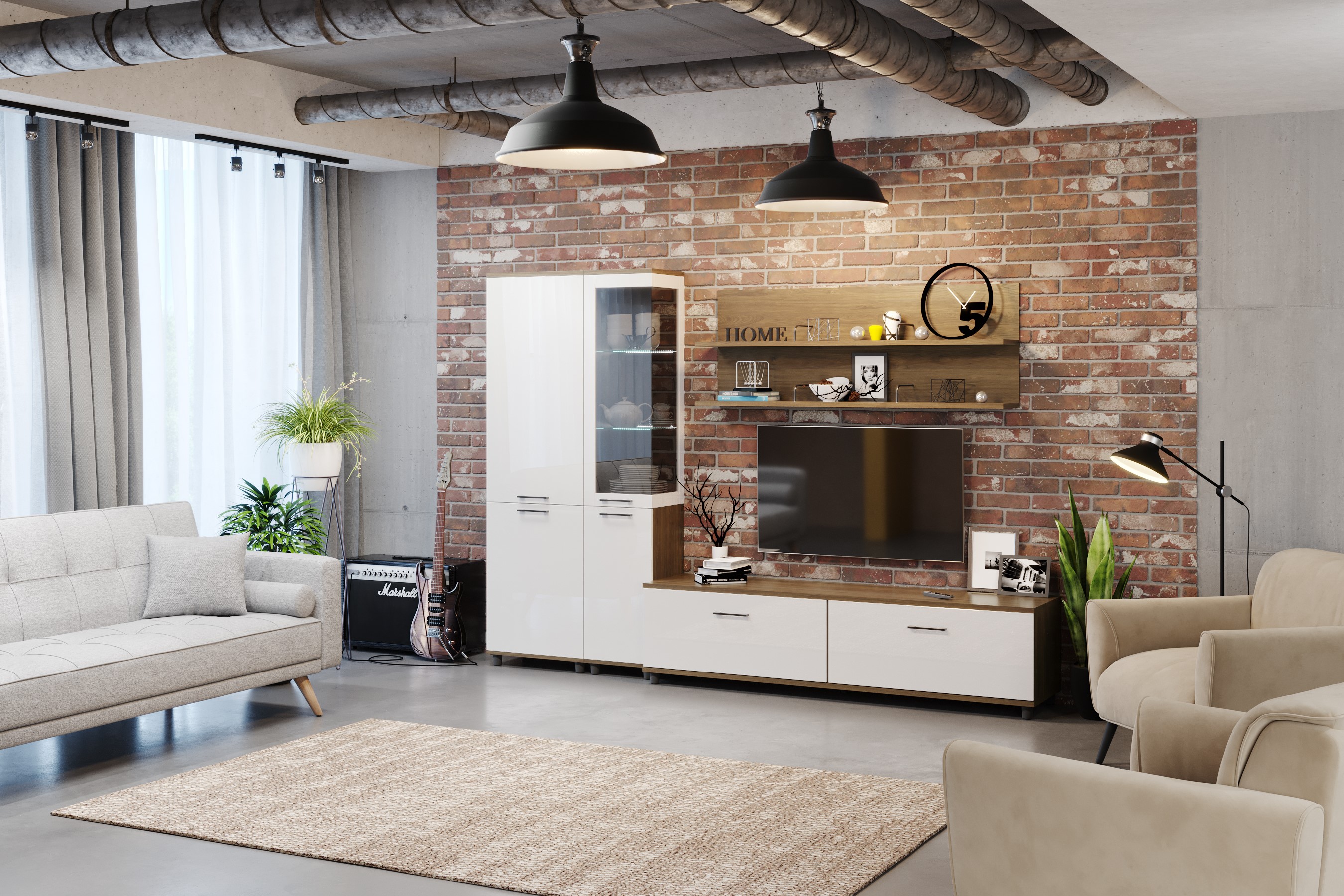 Отзывы о Столплит Модульная гостиная Грейс композиция 2 Гикори Джексон Темный Белый Глянец