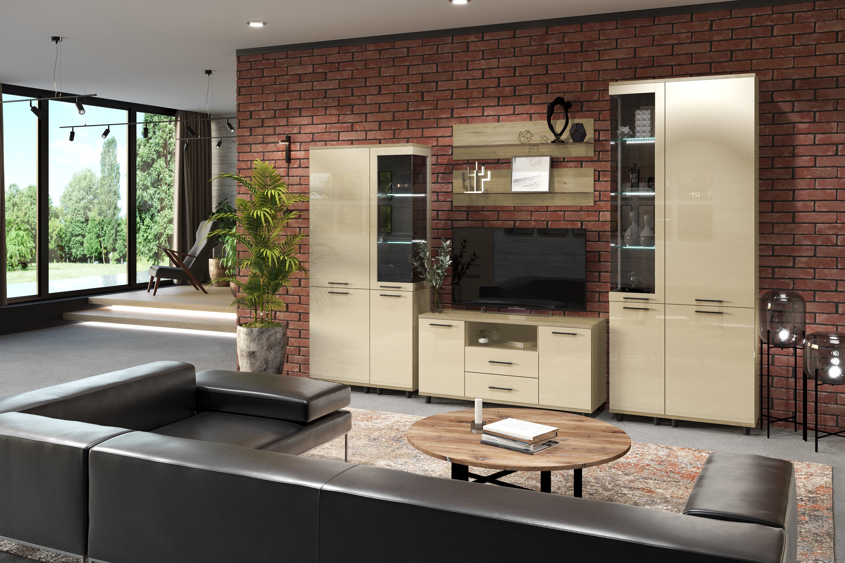 Модульная гостиная Грейс композиция 3 Гикори Джексон Светлый (Бежевый глянец) Код I0000410233