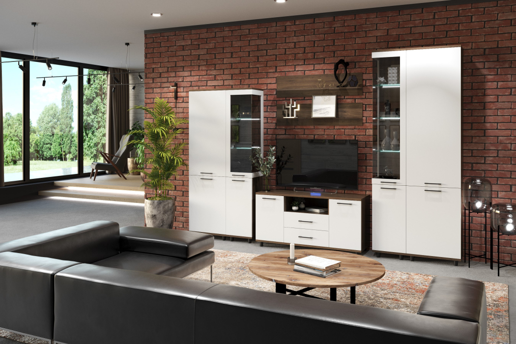 Отзывы о Столплит Модульная гостиная Грейс композиция 3 Гикори Джексон Темный Белый Глянец