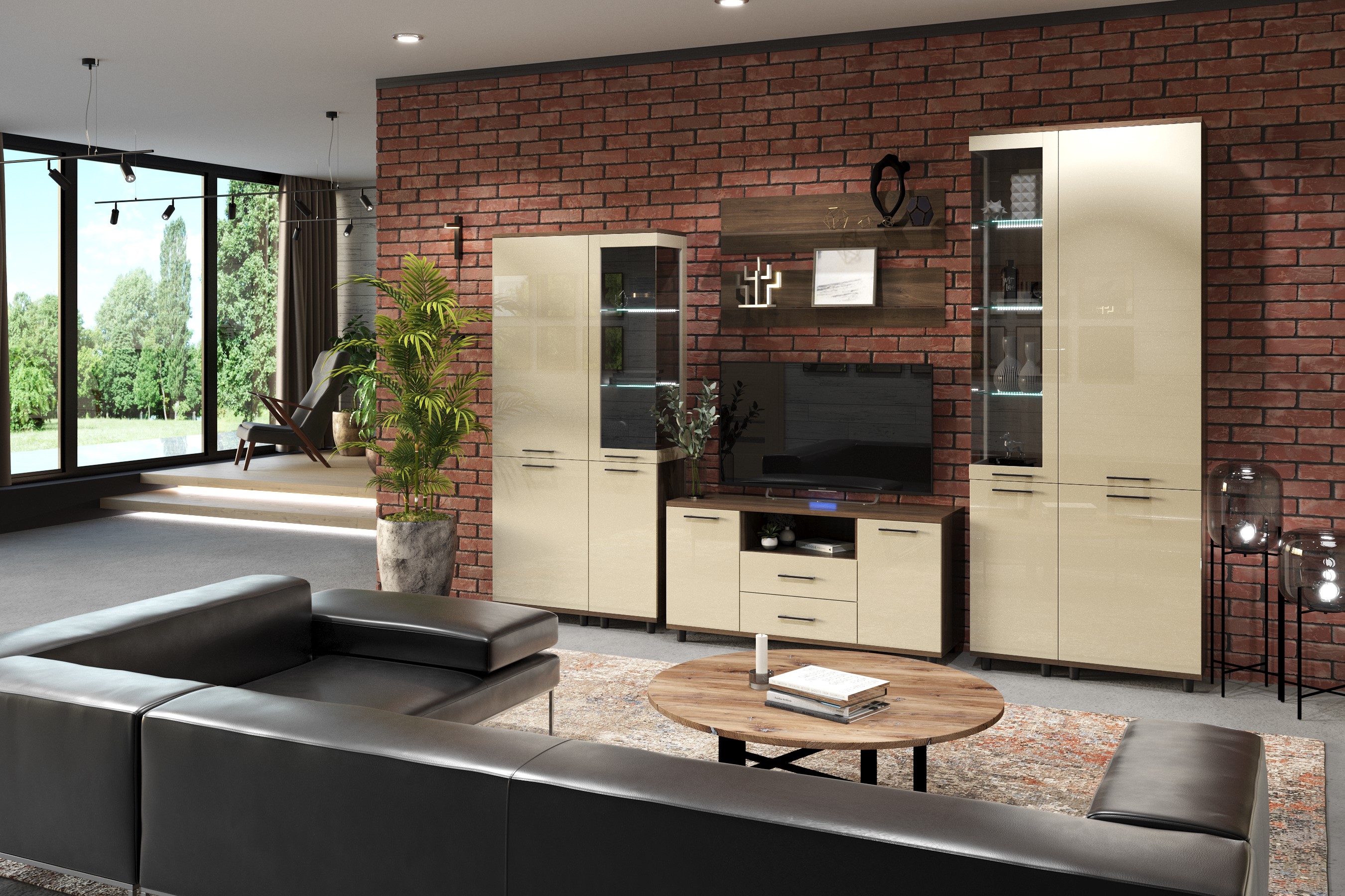 Отзывы о Столплит Модульная гостиная Грейс композиция 3 Гикори Джексон Темный Бежевый глянец
