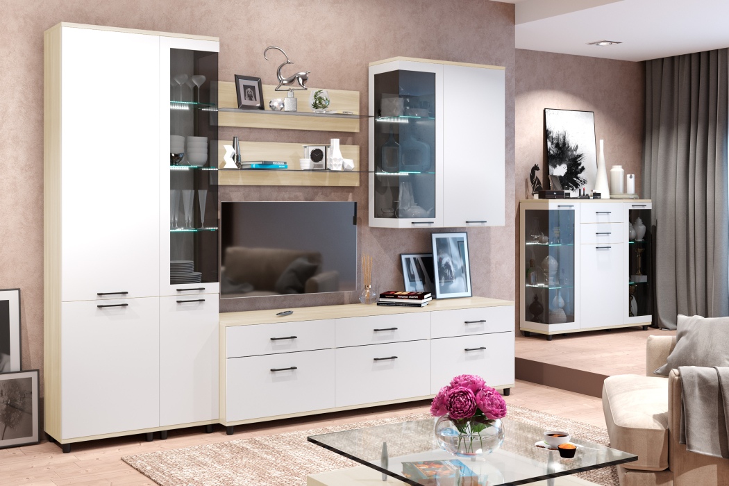 Коллекция мебели для гостиной «Грейс» предлагает широкий выбор модулей, стилистически и функционально сочетающихся между собой.