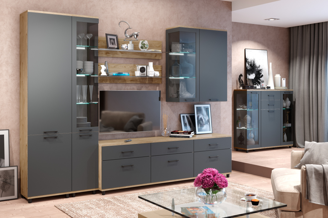 Коллекция мебели для гостиной «Грейс» предлагает широкий выбор модулей, стилистически и функционально сочетающихся между собой.
