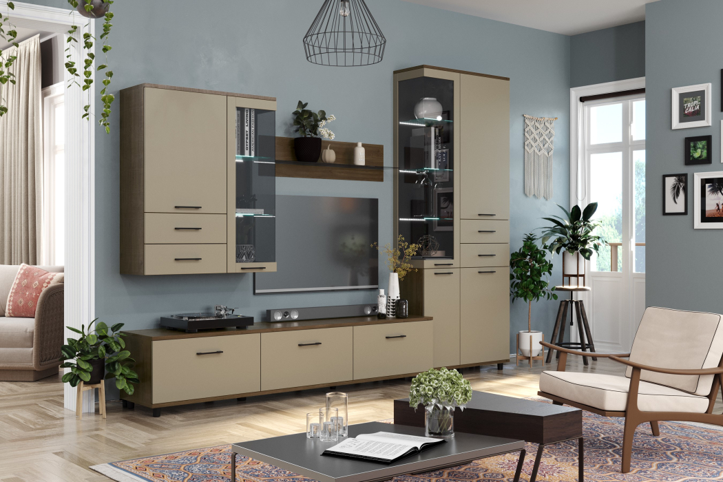 Коллекция мебели для гостиной «Грейс» предлагает широкий выбор модулей, стилистически и функционально сочетающихся между собой.