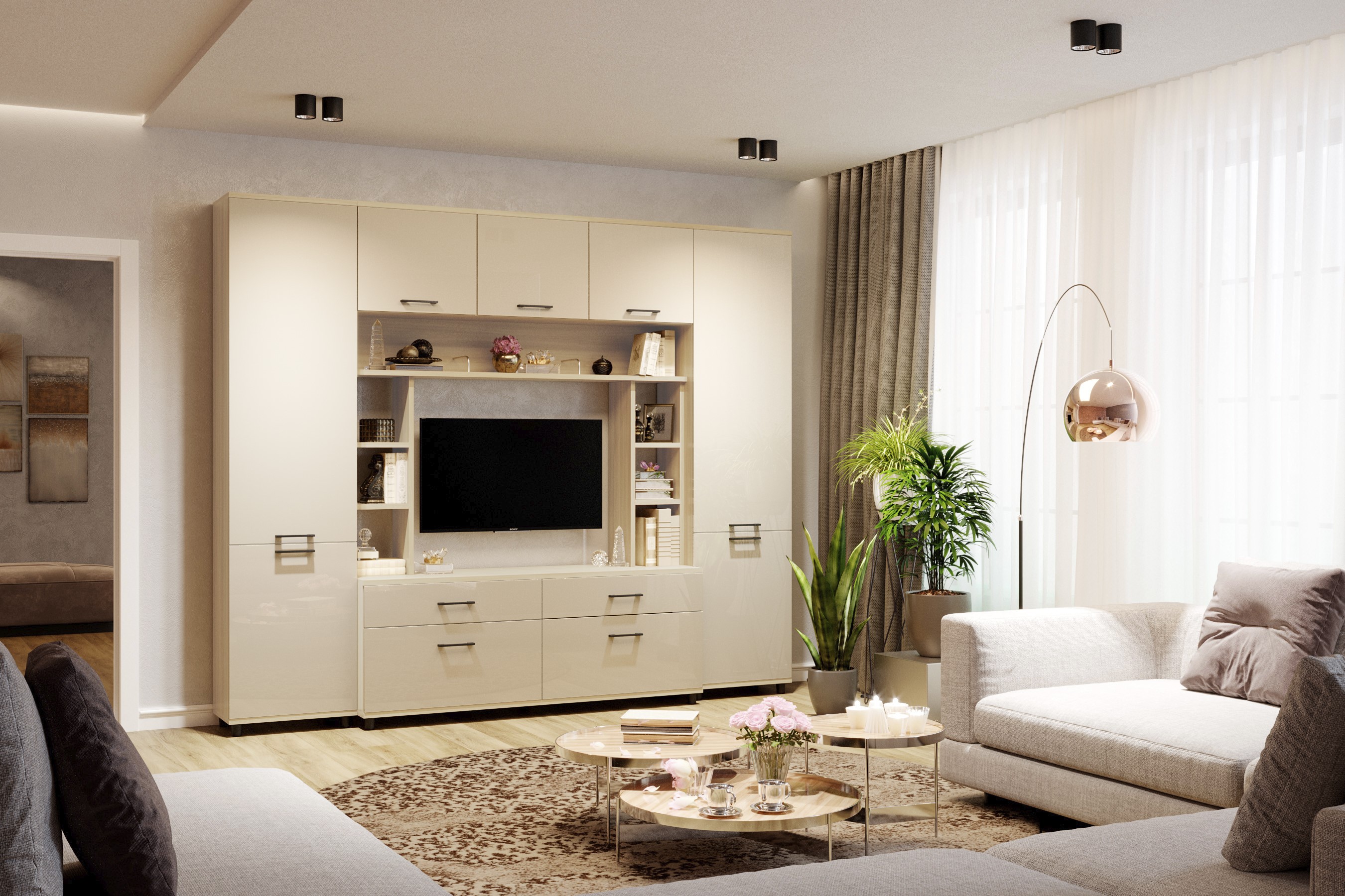 Отзывы о Столплит Модульная гостиная Грейс композиция 7 Ясень Асахи Бежевый глянец