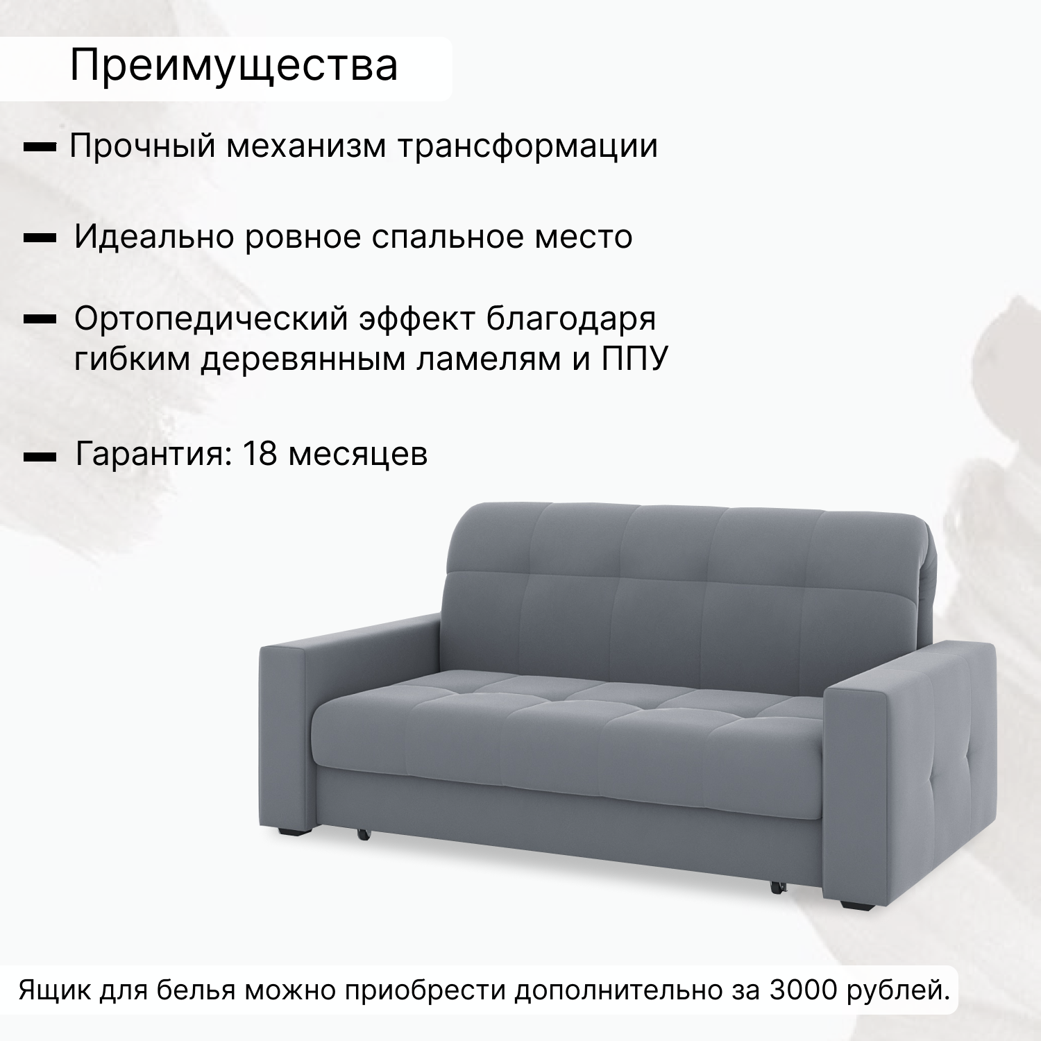 Особенностью данной модели является механизм аккордеон. Благодаря ему, диван легко превращается в кровать, обеспечивая удобство и простоту использования. Размеры спального места составляют 140*200 см, что позволяет использовать его как полноценную кровать.