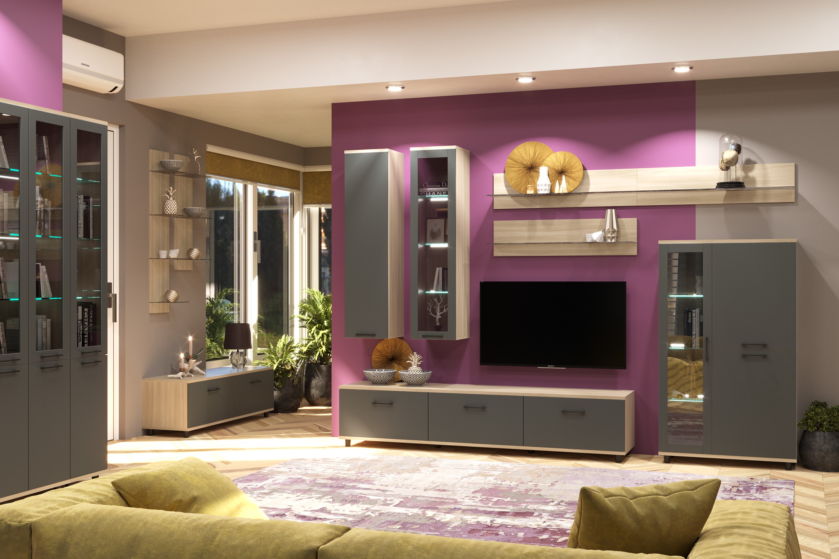 Модульная гостиная Грейс композиция 8 Ясень Асахи (Антрацит) Код I0000410428