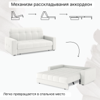 Особенностью данной модели является механизм аккордеон. Благодаря ему, диван легко превращается в кровать, обеспечивая удобство и простоту использования. Размеры спального места составляют 140*200 см, что позволяет использовать его как полноценную кровать.
