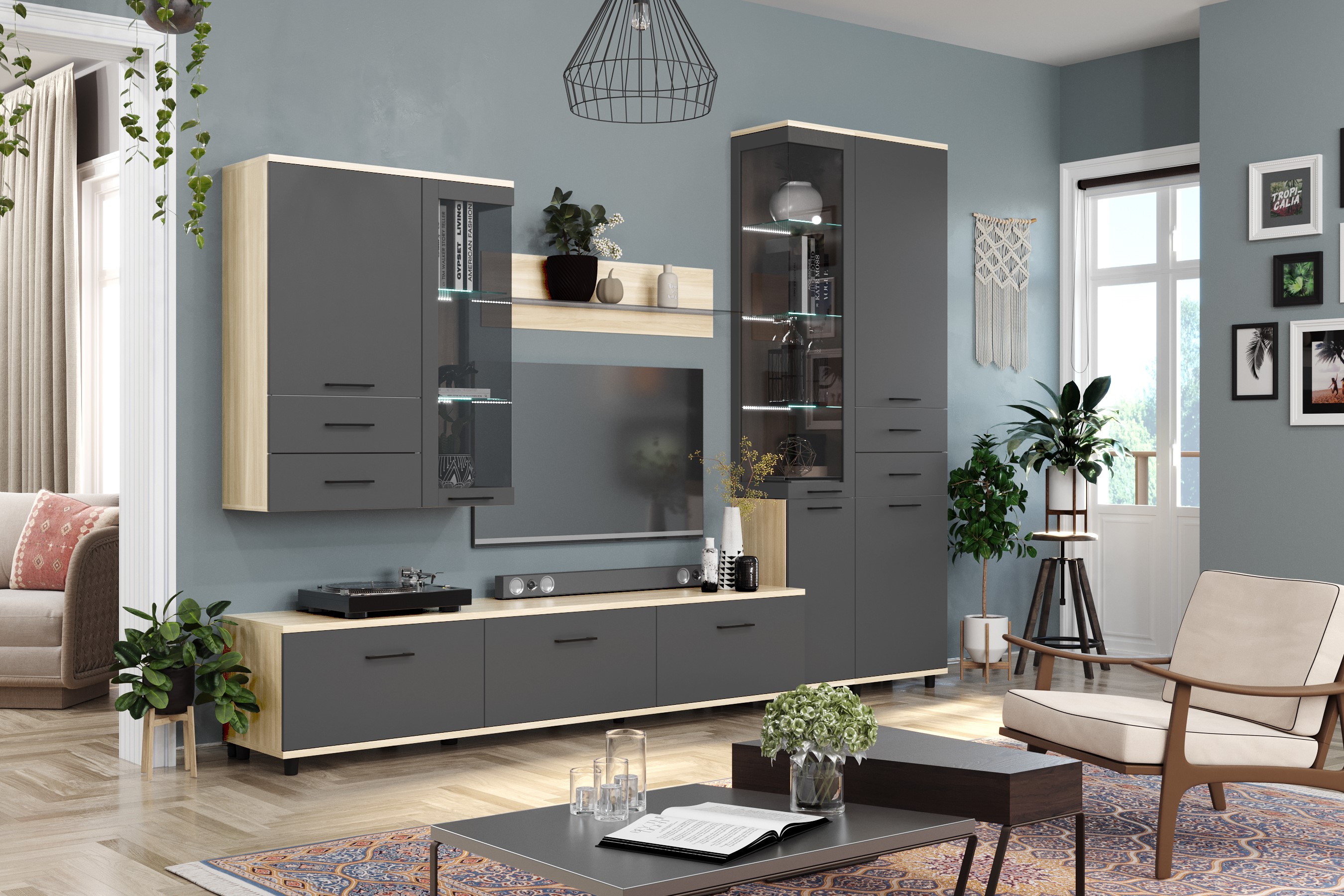 Модульная гостиная Грейс композиция 11 Ясень Асахи (Антрацит) Код I0000410614