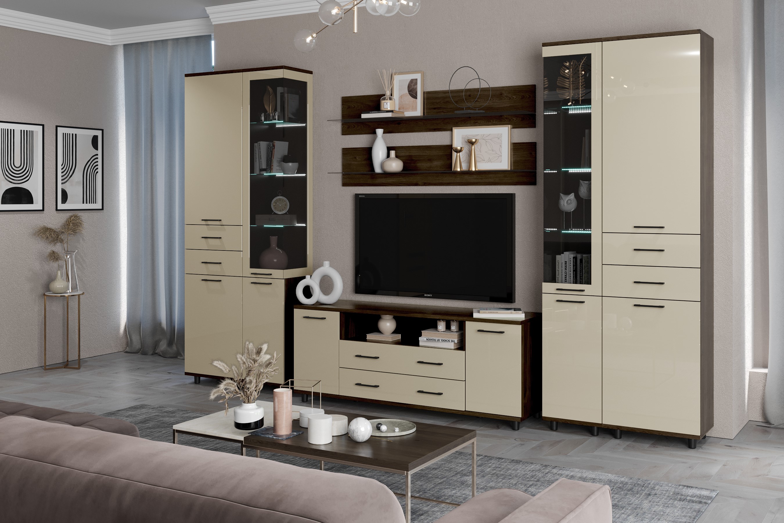 Отзывы о Столплит Модульная гостиная Грейс композиция 12 Гикори Джексон Темный Бежевый глянец