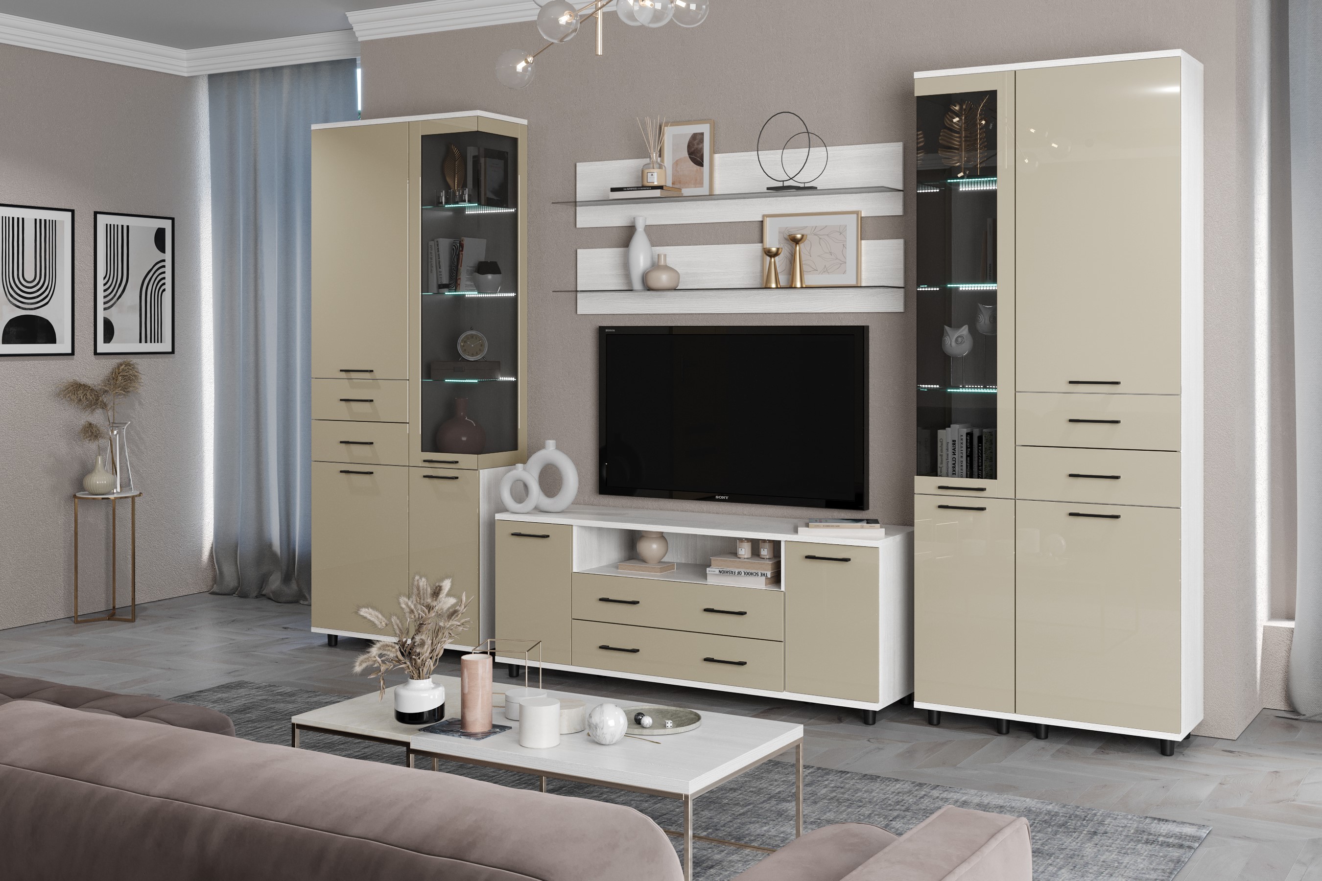 Отзывы о Столплит Модульная гостиная Грейс композиция 12 Снежный Ясень Бежевый глянец