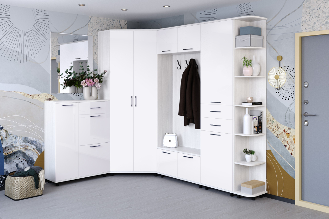 Отзывы о Столплит Модульная прихожая Грейс композиция 1 Снежный Ясень Белый Глянец