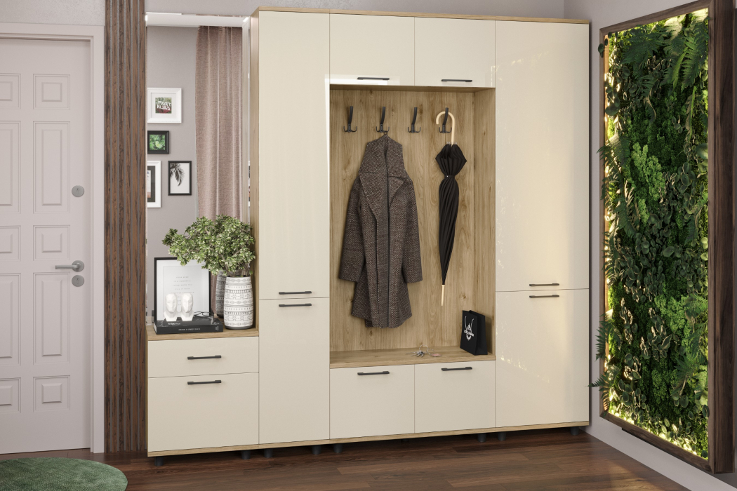 Отзывы о Столплит Модульная прихожая Грейс композиция 3 Гикори Джексон Светлый Бежевый глянец