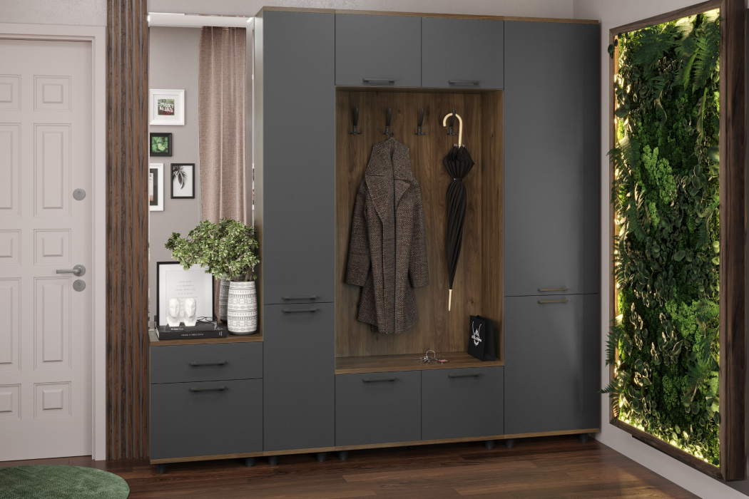 Отзывы о Столплит Модульная прихожая Грейс композиция 3 Гикори Джексон Темный Антрацит