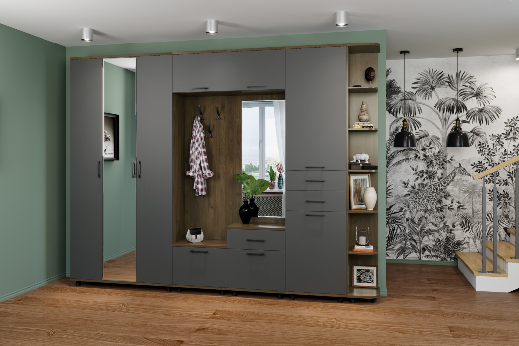 Отзывы о Столплит Модульная прихожая Грейс композиция 5 Гикори Джексон Темный Антрацит