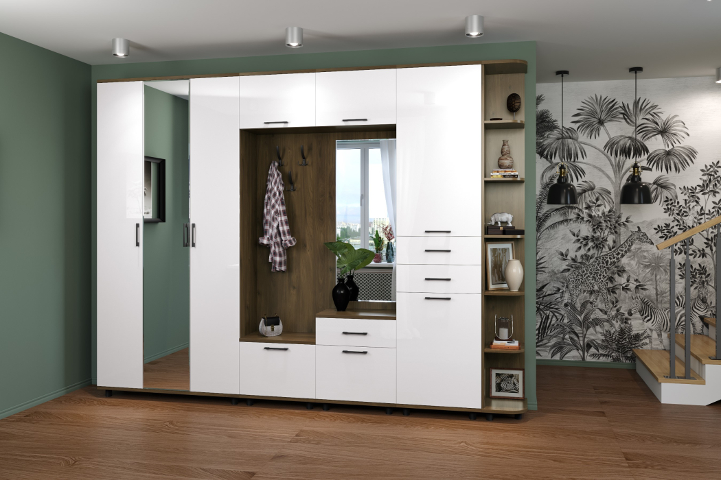 Отзывы о Столплит Модульная прихожая Грейс композиция 5 Гикори Джексон Темный Белый Глянец