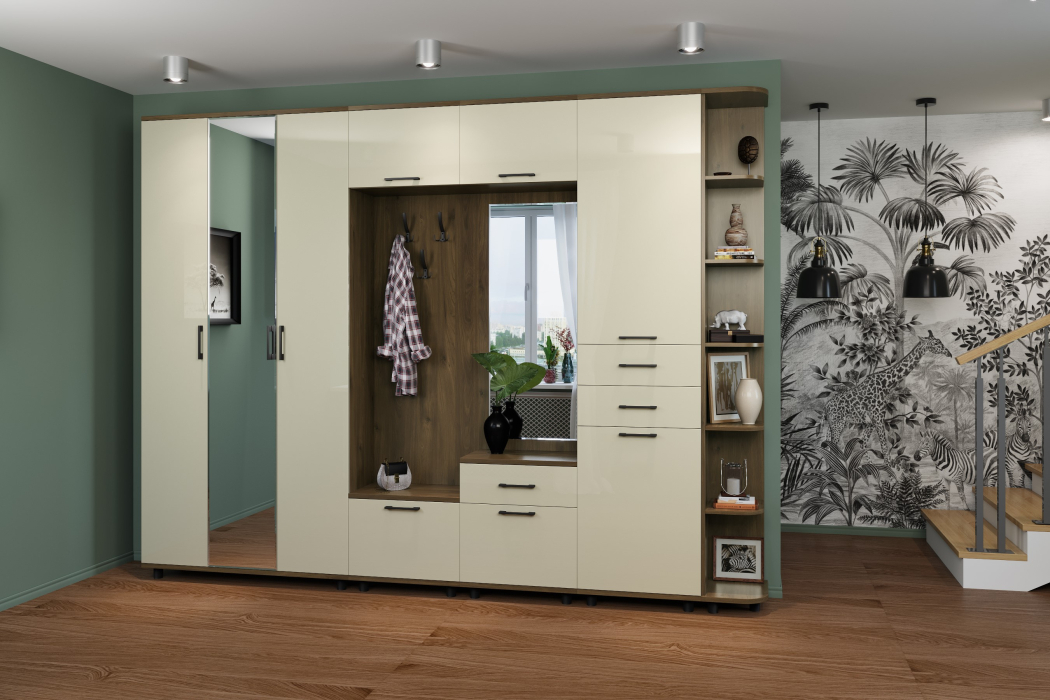 Отзывы о Столплит Модульная прихожая Грейс композиция 5 Гикори Джексон Темный Бежевый глянец