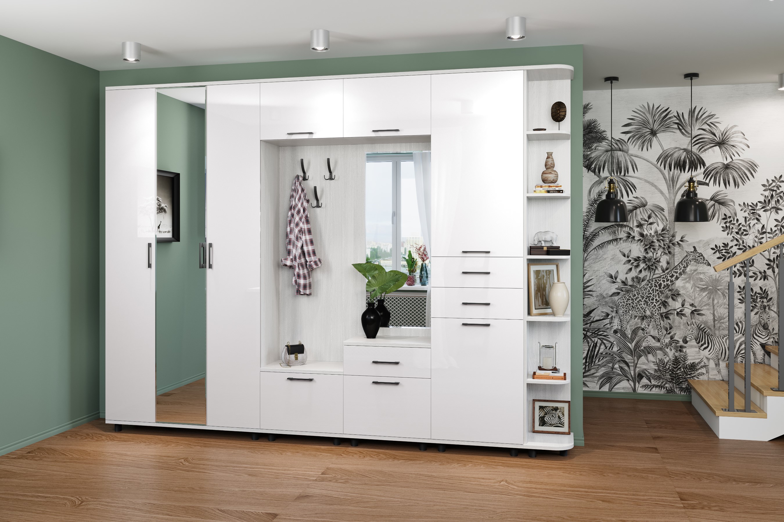 Отзывы о Столплит Модульная прихожая Грейс композиция 5 Снежный Ясень Белый Глянец