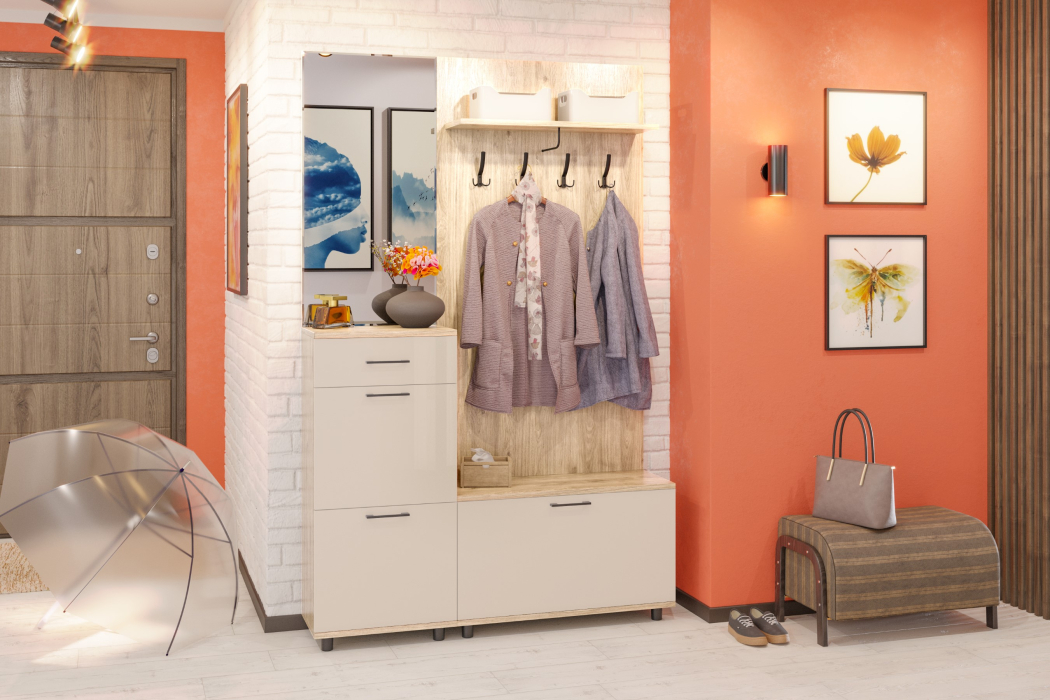 Модульная прихожая Грейс композиция 9 Гикори Джексон Светлый (Бежевый глянец) Код I0000410920