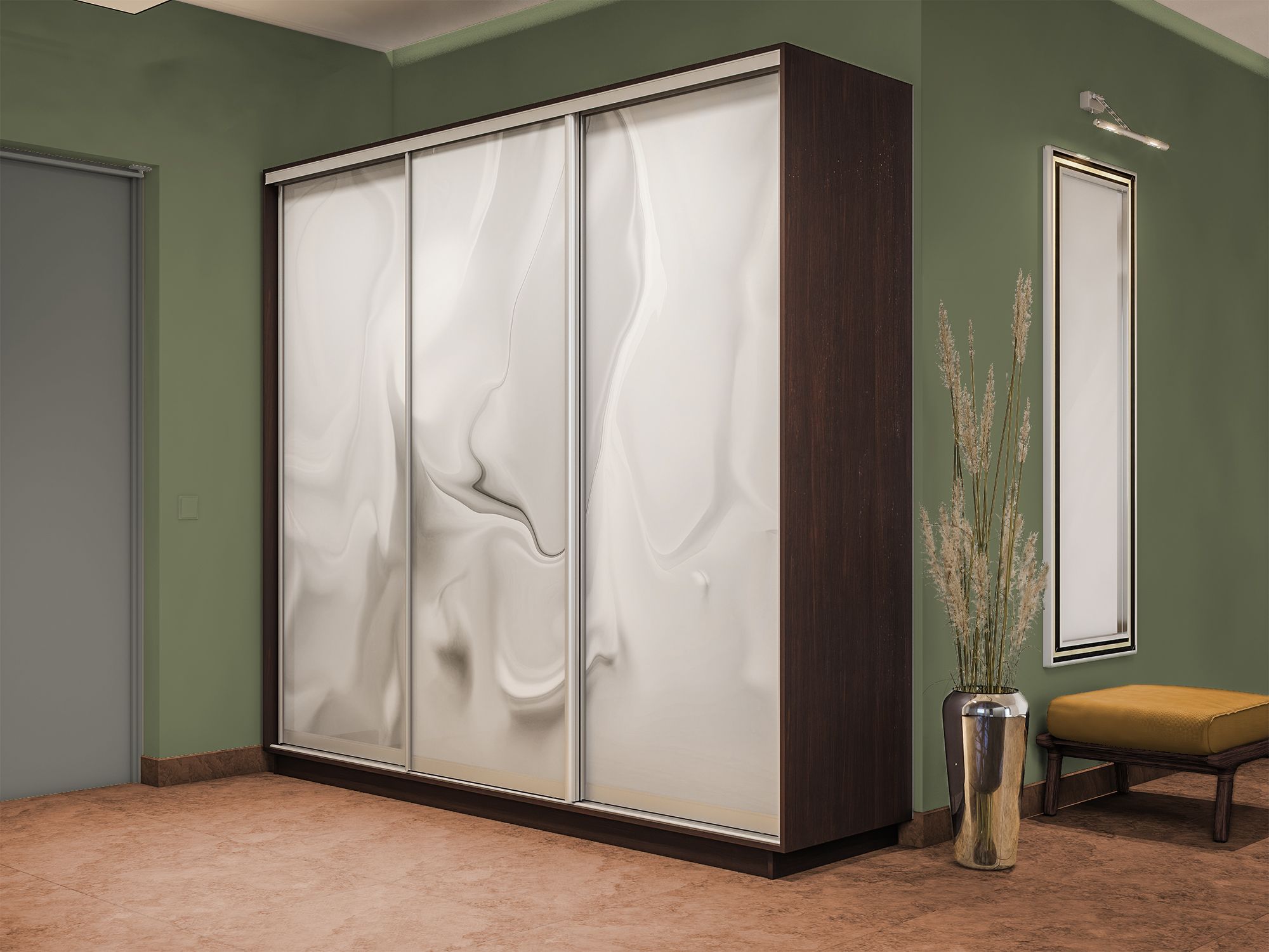 Шкаф-купе Экспресс 3-х дверный Фотопечать Шелк Стекла 180х45х220 (Венге)