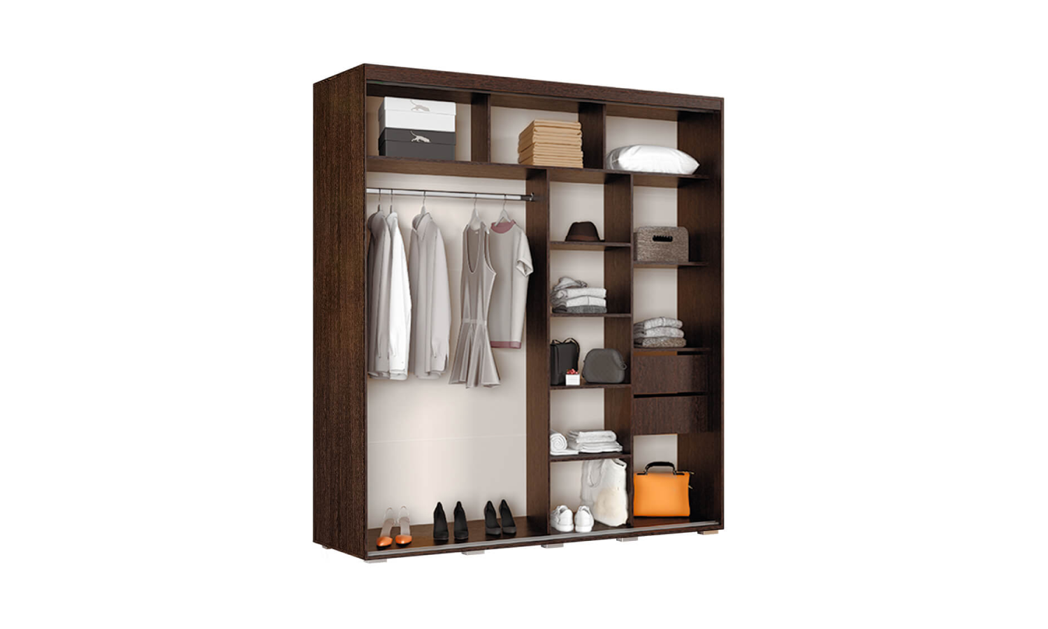 Удобная организация внутреннего пространства позволяет хранить вещи в порядке и без лишних усилий находить необходимое. Полки и ящики предлагают достаточно места для хранения белья, одежды и других личных вещей. Раздельное отделение со штангой под плечики обеспечивает комфортное размещение верхней одежды и длинных предметов гардероба, таких как платья и пальто. Конструкция шкафа учитывает нагрузочные параметры: каждая полка выдерживает до 10 кг, штанга для плечиков - до 10 кг, а ящики - до 5 кг, что позволяет эффективно использовать пространство без риска повреждения мебели.