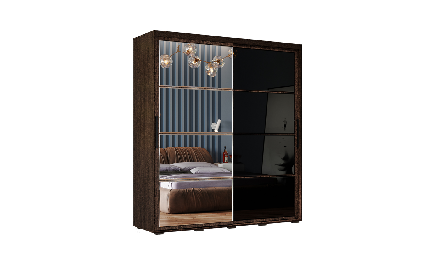 Практичная конструкция шкафа-купе "Крафт-6" продумана до мельчайших деталей. Раздвижные дверцы из темного стекла и зеркала не только создают интересный эстетический эффект, но и имеют функциональную роль: зеркало визуально увеличивает пространство, а темное стекло придает помещению элегантность и современный стиль.