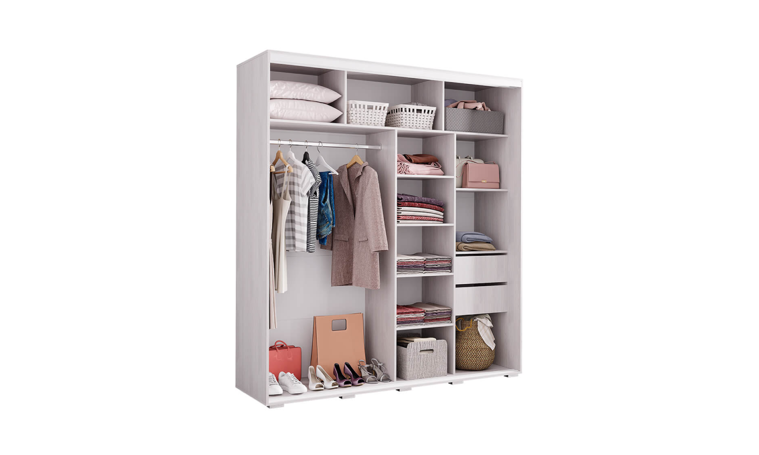 Удобная организация внутреннего пространства позволяет хранить вещи в порядке и без лишних усилий находить необходимое. Полки и ящики предлагают достаточно места для хранения белья, одежды и других личных вещей. Раздельное отделение со штангой под плечики обеспечивает комфортное размещение верхней одежды и длинных предметов гардероба, таких как платья и пальто. Конструкция шкафа учитывает нагрузочные параметры: каждая полка выдерживает до 10 кг, штанга для плечиков - до 10 кг, а ящики - до 5 кг, что позволяет эффективно использовать пространство без риска повреждения мебели.
