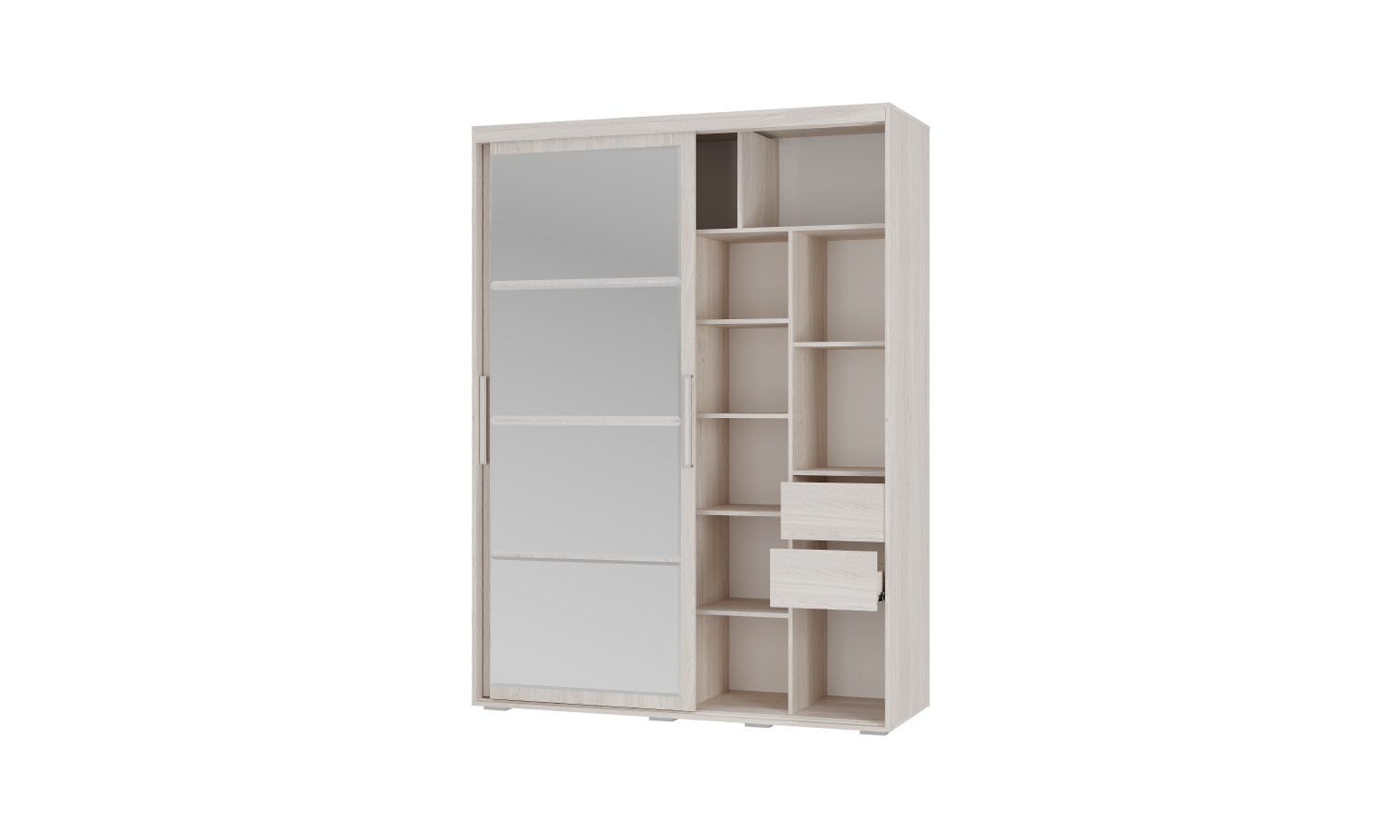 Удобная организация внутреннего пространства позволяет хранить вещи в порядке и без лишних усилий находить необходимое. Полки и ящики предлагают достаточно места для хранения белья, одежды и других личных вещей. Раздельное отделение со штангой под плечики обеспечивает комфортное размещение верхней одежды и длинных предметов гардероба, таких как платья и пальто. Конструкция шкафа учитывает нагрузочные параметры: каждая полка выдерживает до 10 кг, штанга для плечиков - до 10 кг, а ящики - до 5 кг, что позволяет эффективно использовать пространство без риска повреждения мебели.