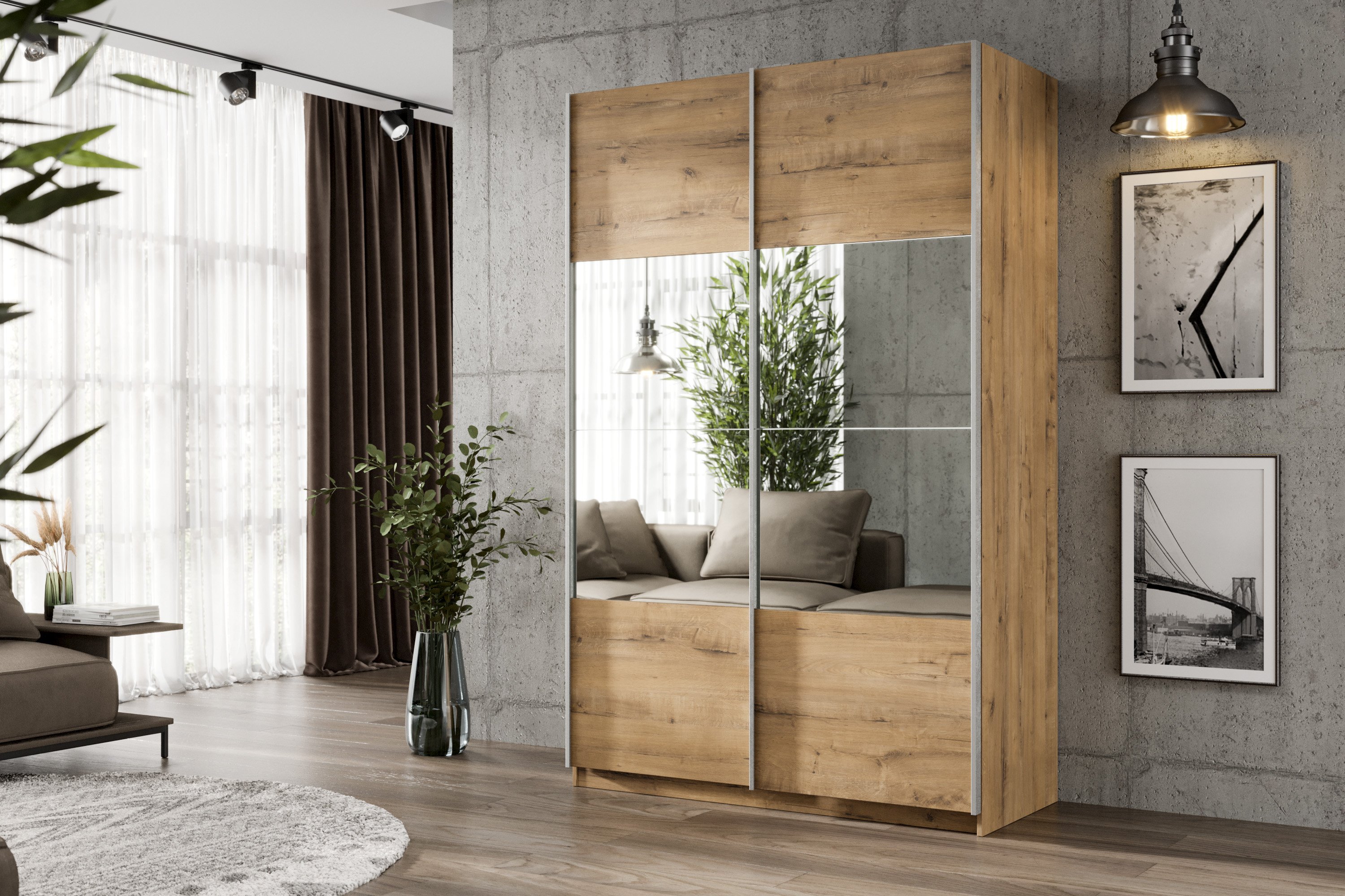 Отзывы о Столплит Шкаф-купе Smart 1222 2х дверный (фасады ЛДСП/зеркало) профиль серебро Бунратти
