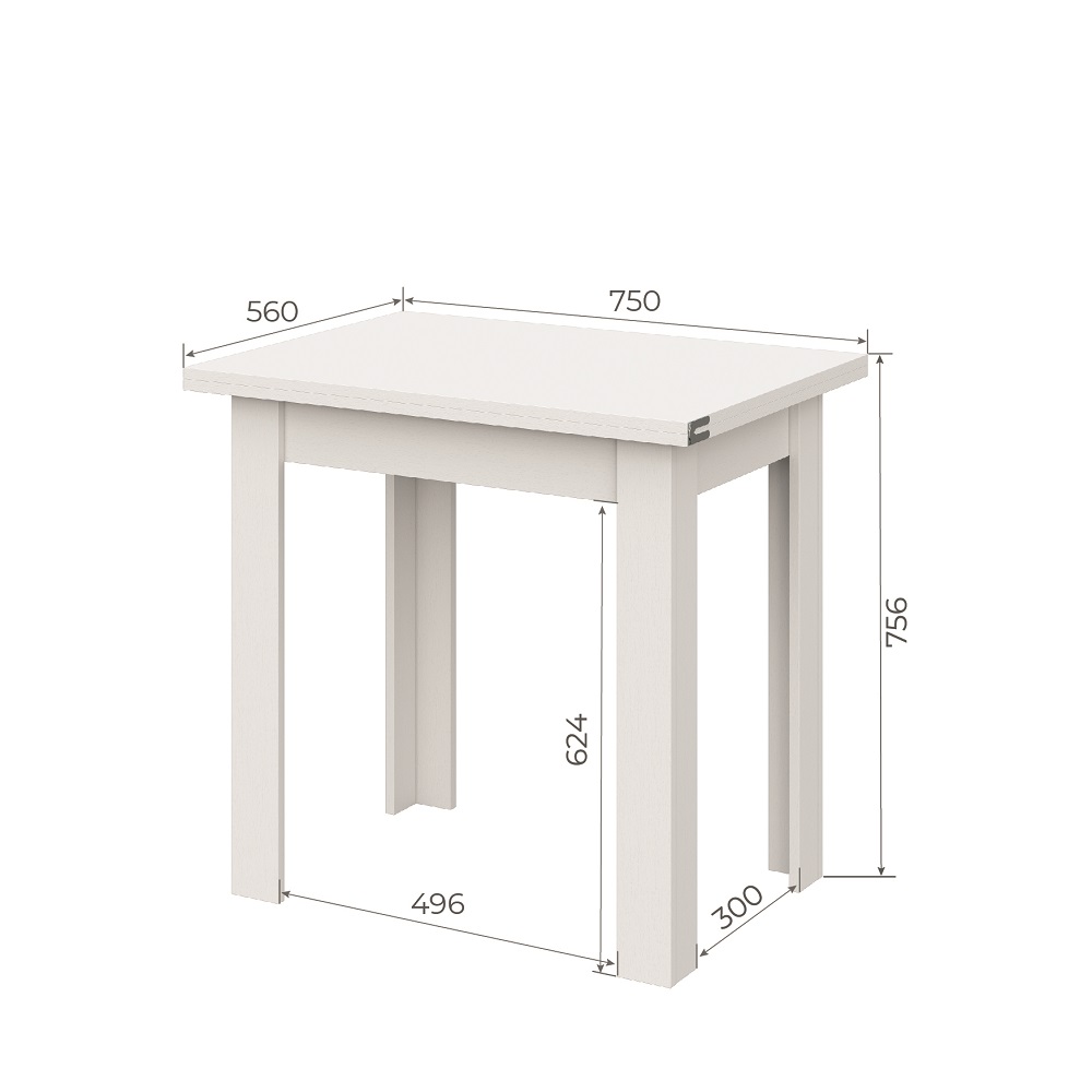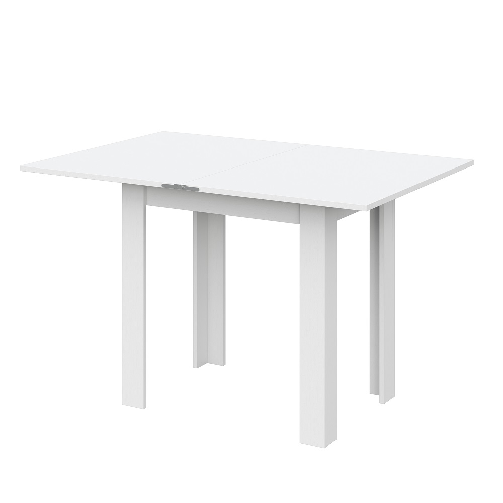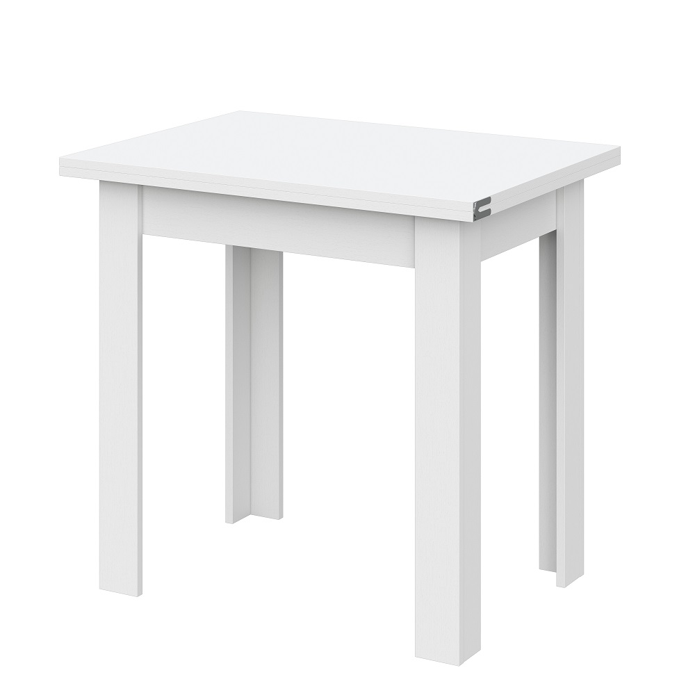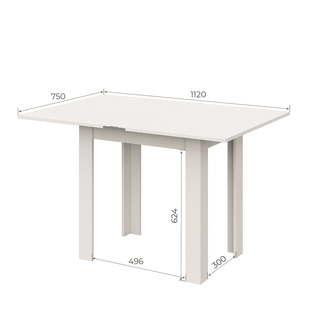 Обеденный раскладной стол из ЛДСП. В сложенном виде имеет компактные размеры. Благодаря удобному и надежному механизму разложения ширина столешницы легким движением руки увеличивается с 75 до 112 см.
