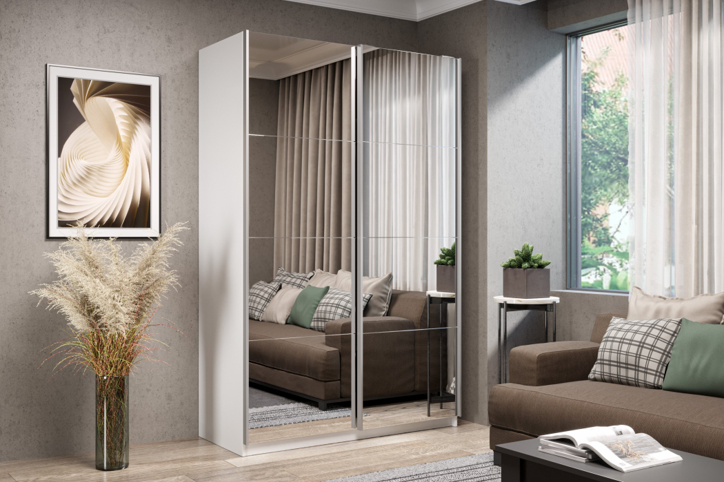 Отзывы о Столплит Шкаф-купе Smart 1622 2х дверный (фасады зеркало) профиль серебро Белый