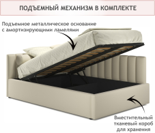 • Укомплектована подъемным основанием - ортопедическими ламелями на металлической рамке.