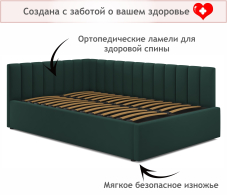 • Укомплектована подъемным основанием - ортопедическими ламелями на металлической рамке.