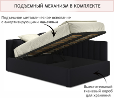 • Укомплектована подъемным основанием - ортопедическими ламелями на металлической рамке.